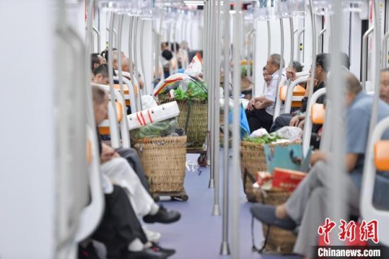 圖為菜農們乘坐重慶軌道交通4號線前往市區賣菜。中新網記者何蓬磊 攝